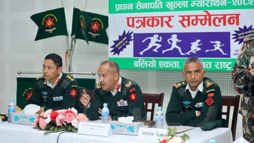 काठमाडौँ । यस वर्षको ‘प्रधान सेनापति खुल्ला म्याराथन दौड प्रतियोगिता’ यही माघ २४ गते हुने भएको छ । नेपाली सैनिक शारीरिक तालिम तथा खेलकुद केन्द्रद्वारा आज यहाँ आयोजित पत्रकार सम्मेलनमा प्रतियोगिताका लागि यस वर्ष ‘बलियो एकता, सुरक्षित...