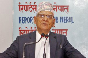 Chairman of Rashtriya Janamorcha, Chitra Bahadur KC speaks at an interaction programme in Kathmandu, on Friday, April 05, 2019. Courtesy: Reporters Club