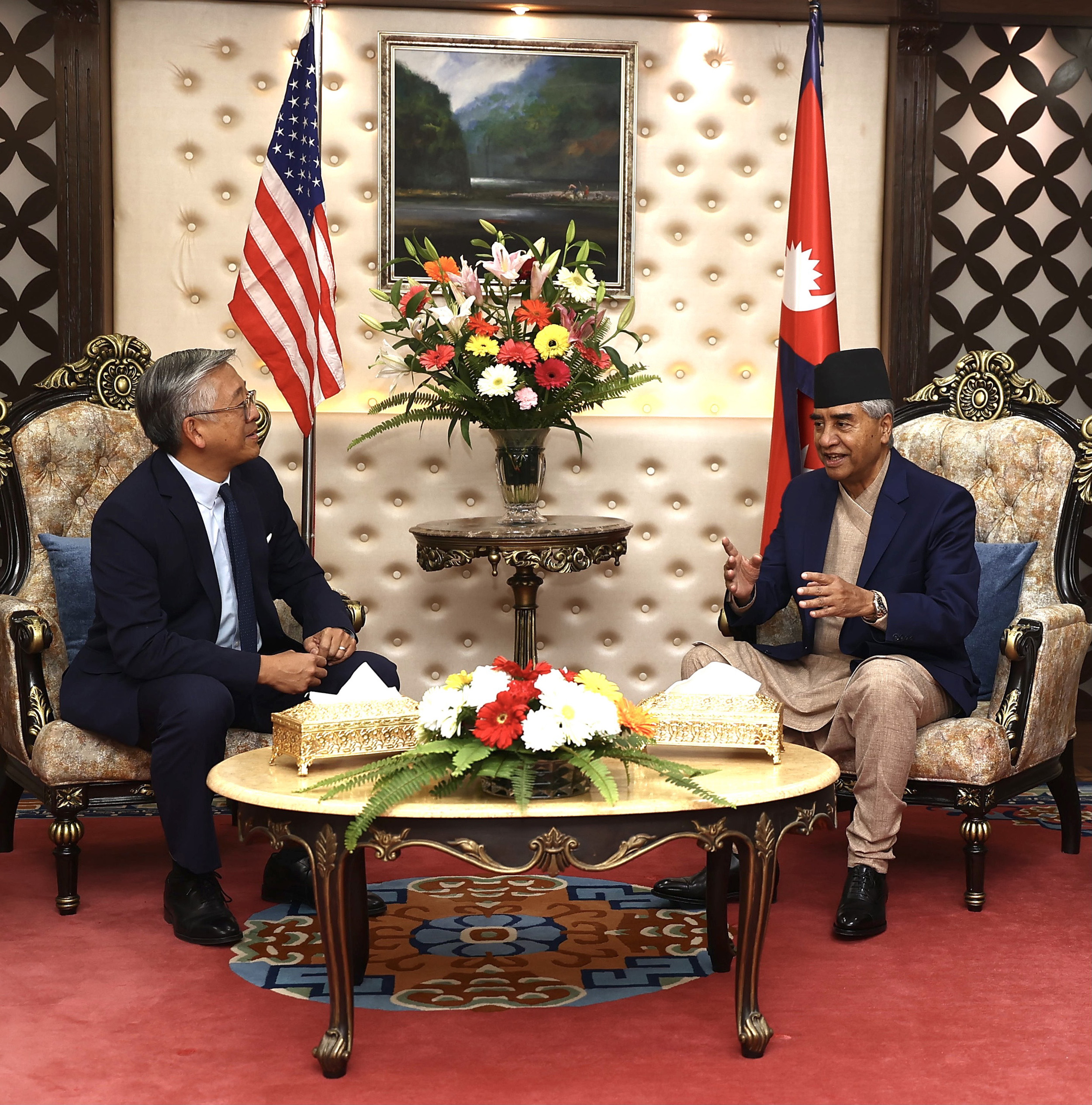 प्रधानमन्त्री शेरबहादुर देउवासँग आज साँझ उनको सरकारी निवासमा शिष्टाचार भेट गर्दै दक्षिण तथा मध्य एशियाली मामिलासम्बन्धी अमेरिकी सहायक विदेशमन्त्री डोनाल्ड लु र उपसहायक विदेशमन्त्री केली किडरलिङले नेपालप्रतिको अमेरिकी सहयोग र समर्थनको प्रतिबद्धता दोहोरयाएका हुन् ।