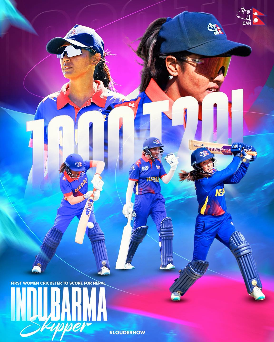 काठमाडौं–नेपाली महिला राष्ट्रिय क्रिकेट टोलीकी कप्तान इन्दु बर्माले टी–२० अन्तर्राष्ट्रिय क्रिकेटमा एक हजार रन पूरा गर्ने उपलब्धि हासिल गरेकी छन् ।