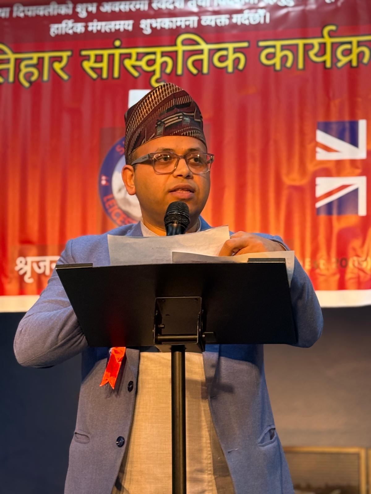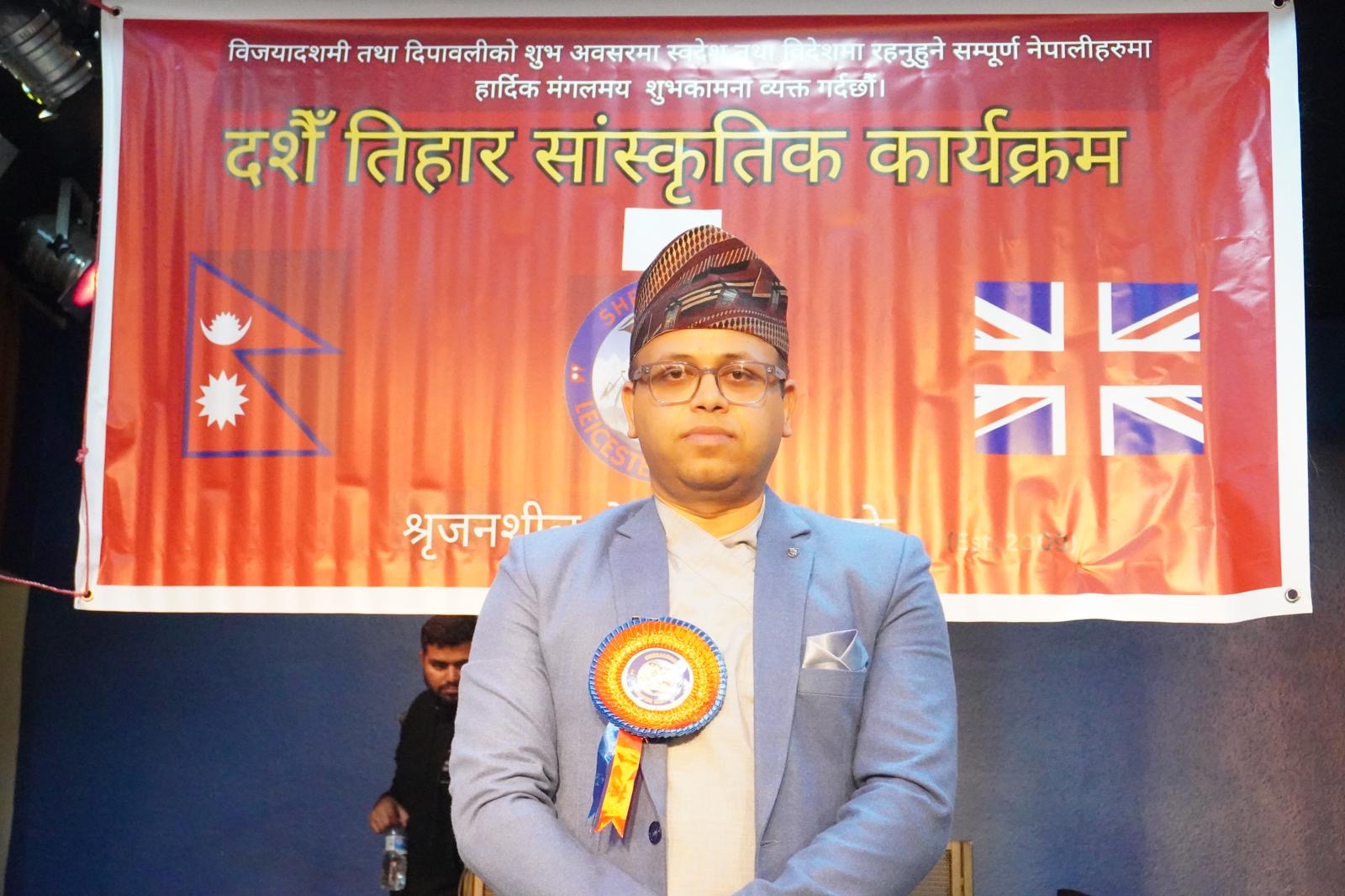 लेष्टर- श्रृजनशील लेष्टर नेपाल यूकेको आयोजनामा दशैंतिहार शुभकामना सांस्कृतिक कार्यक्रम सम्पन्न भएको छ। सोमबार लेष्टर रेलवेम्यान्स पब, लेष्टर रोडमा संस्थाका अध्यक्ष शिव पराजुलीको अध्यक्षतामा विविध सांस्कृतिक प्रस्तुतिसहित कार्यक्रम सम्पन्न भएको हो।