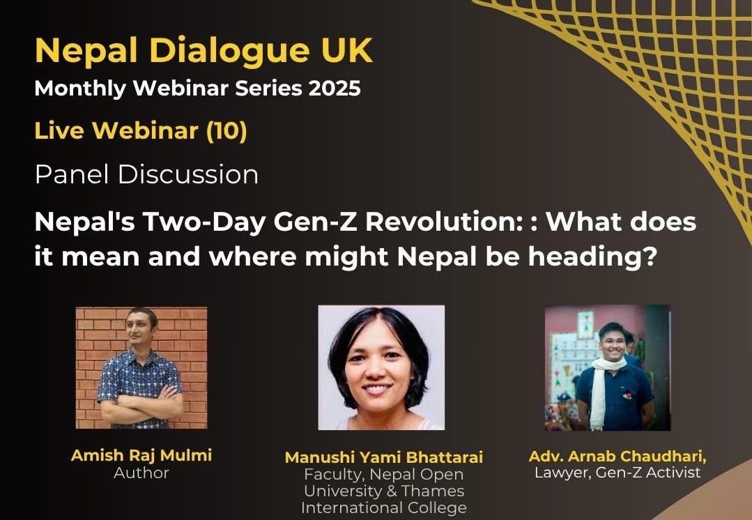 The next Nepal Dialogue Webinar (11) will be a talk, organised online on Saturday, 1 November 2025.