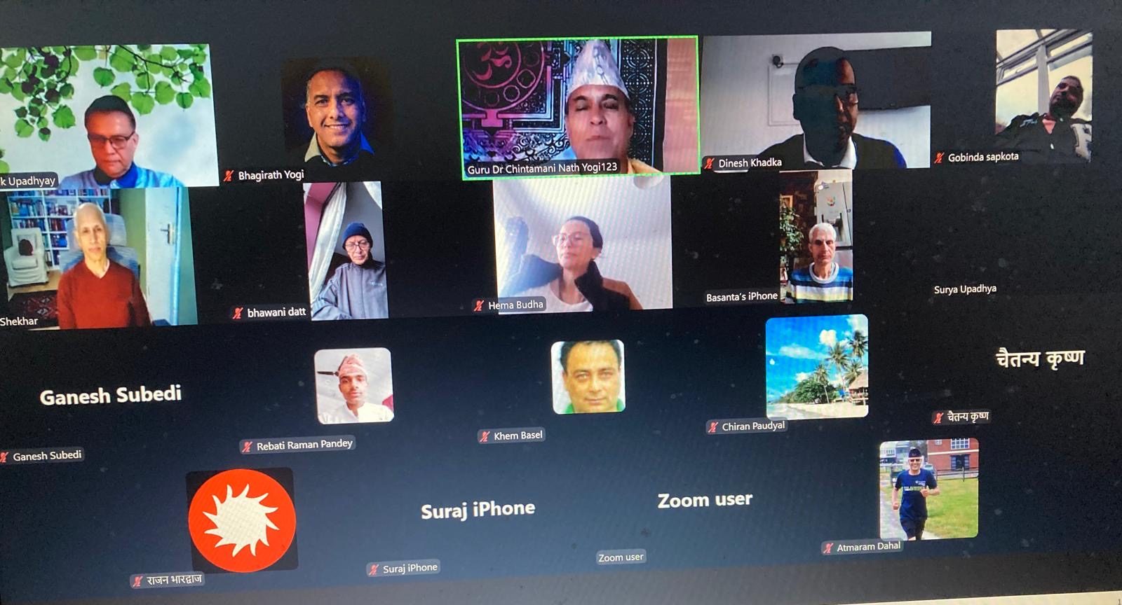 विश्व हिन्दु महासंघ युकेसंग आबद्ध सेवानिवृत्त मेजर सूर्य प्रसाद उपाध्यायले संचालन गरेको भर्चुएल कार्यक्रममा काउन्सिलर दिनेश खड्का, डा भवानी दत्त,