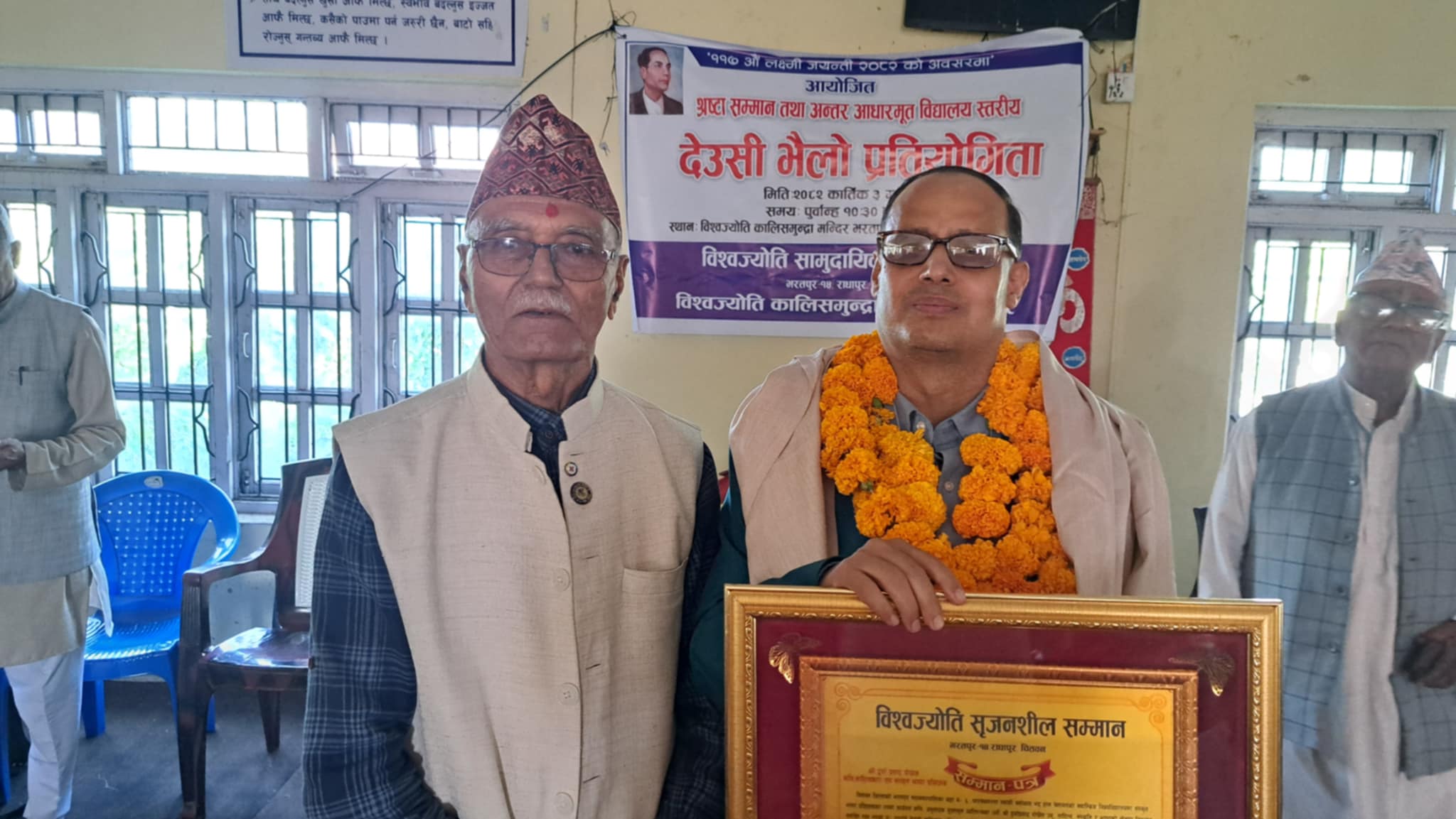 चितवन, कात्तिक ३–नेपाल भ्रमणमा रहेका बेलायतनिवासी साहित्यकार दुर्गाप्रसाद पोख्रेल ‘विश्व ज्योति सृजनशील सम्मान २०८२’ बाट सम्मानित भएका छन्।