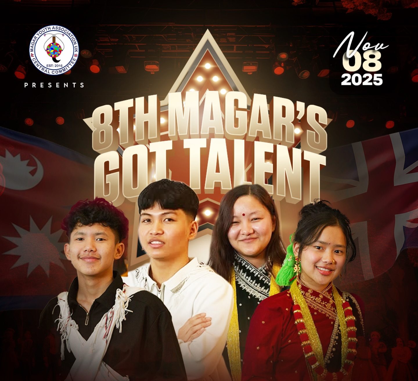 आउंदो नोभेम्बर ८ मा लन्डन फेल्थाममा हुने उक्त वार्षिक प्रतिभा प्रदर्शन कार्यक्रमले मगर समुदायका युवाहरूको सृजनशीलता र सांस्कृतिक पहिचान उजागर गर्ने आयोजकले जनाएका छन् । मगर्स गट ट्यालेन्टको आठौं संस्करण फेल्थामको स्प्रींग वेष्ट एकेडेमी हलमा हुने तयारी छ ।