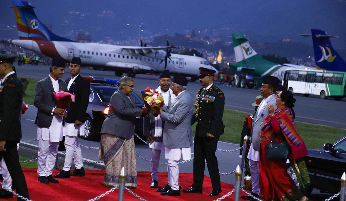 राष्ट्रपति पौडेललाई त्रिभुवन अन्तर्राष्ट्रिय विमानस्थलमा उपराष्ट्रपति रामसहाय प्रसाद यादव, प्रधानमन्त्री सुशीला कार्की लगायतले स्वागत गरेका थिए।
