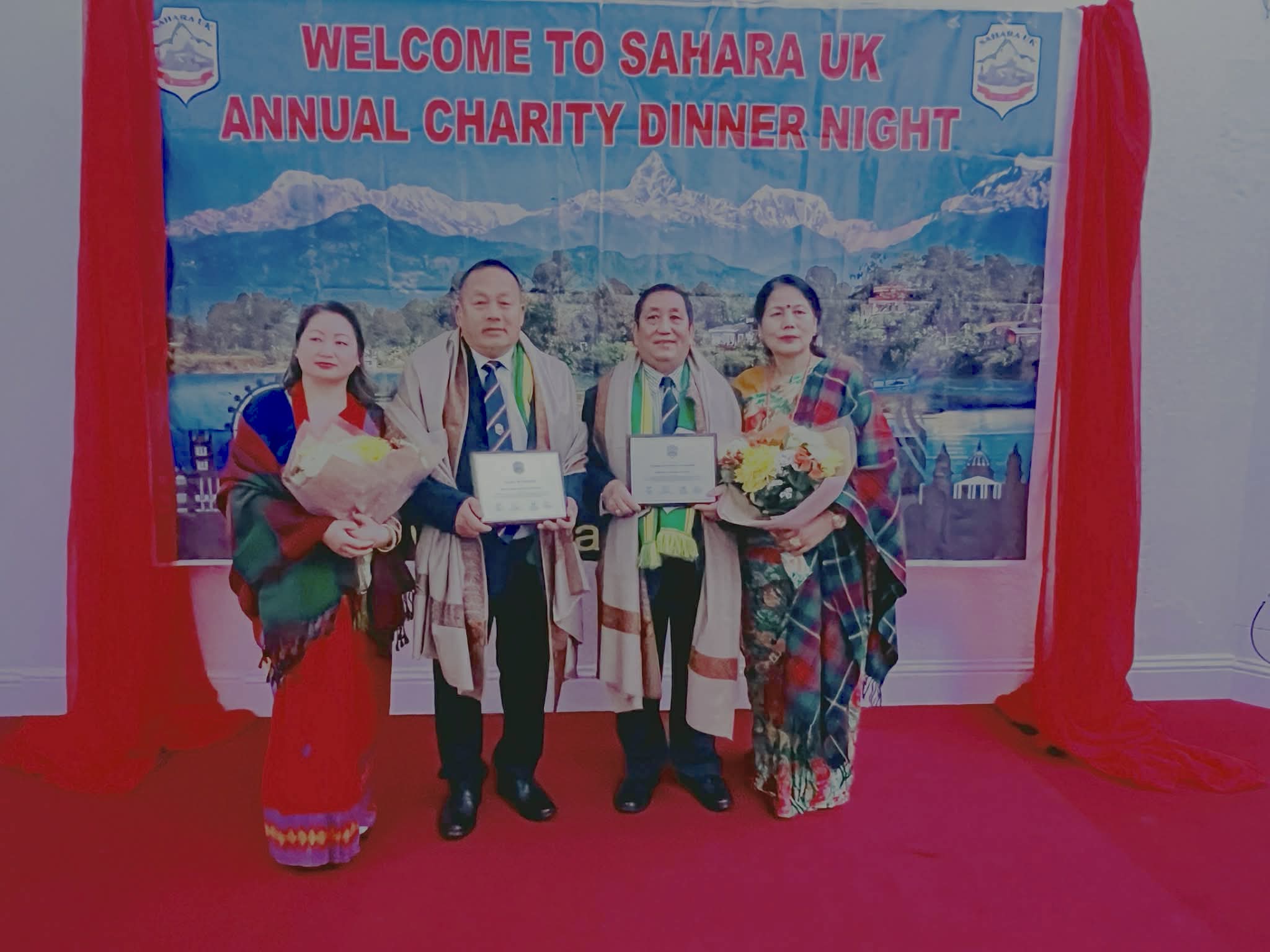 कार्यक्रमका प्रमुख अतिथि दुवाडी, सहारा यूके अध्यक्ष गुरुङ र फस्ट लेडी जीना गुरुङले उनीहरुसहित दम्पत्तिलाई अवार्ड, दोसल्ला, पछ्यौरा र पुष्पगुच्छासहित सम्मान गरे ।