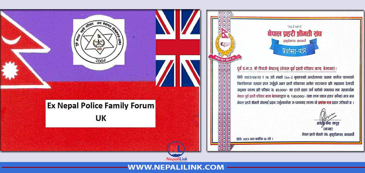 जेनजी आन्दोलनमा मारिएका प्रहरीका परिवारलाई भूतपूर्व प्रहरी मञ्च यूकेको सहयोग