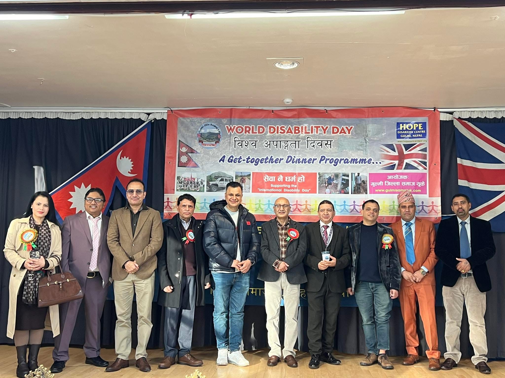लन्डन- गुल्मी जिल्ला समाज यूकेले लन्डनमा एक विशेष कार्यक्रमसहित विश्व अपांगता दिवस च्यारिटी सम्पन्न गरेको छ ।