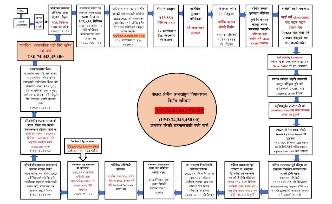 पोखरा अन्तर्राष्ट्रिय विमानस्थल भ्रष्टाचारका अभियुक्तहरुको सूची र भ्रष्टाचारको फ्लोचार्ट: