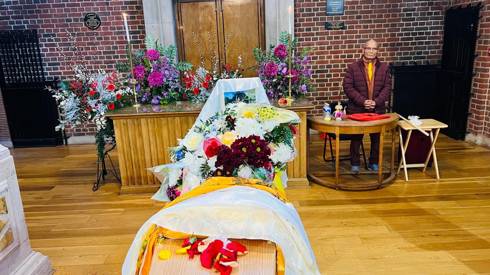 तामाङ घेदुङ यूकेका लामा गुरु कर्मा वाङ्गेलले दिवंगत युबिनको आत्माको चिरशान्तिका लागि प्रार्थना वाचन गरे ।