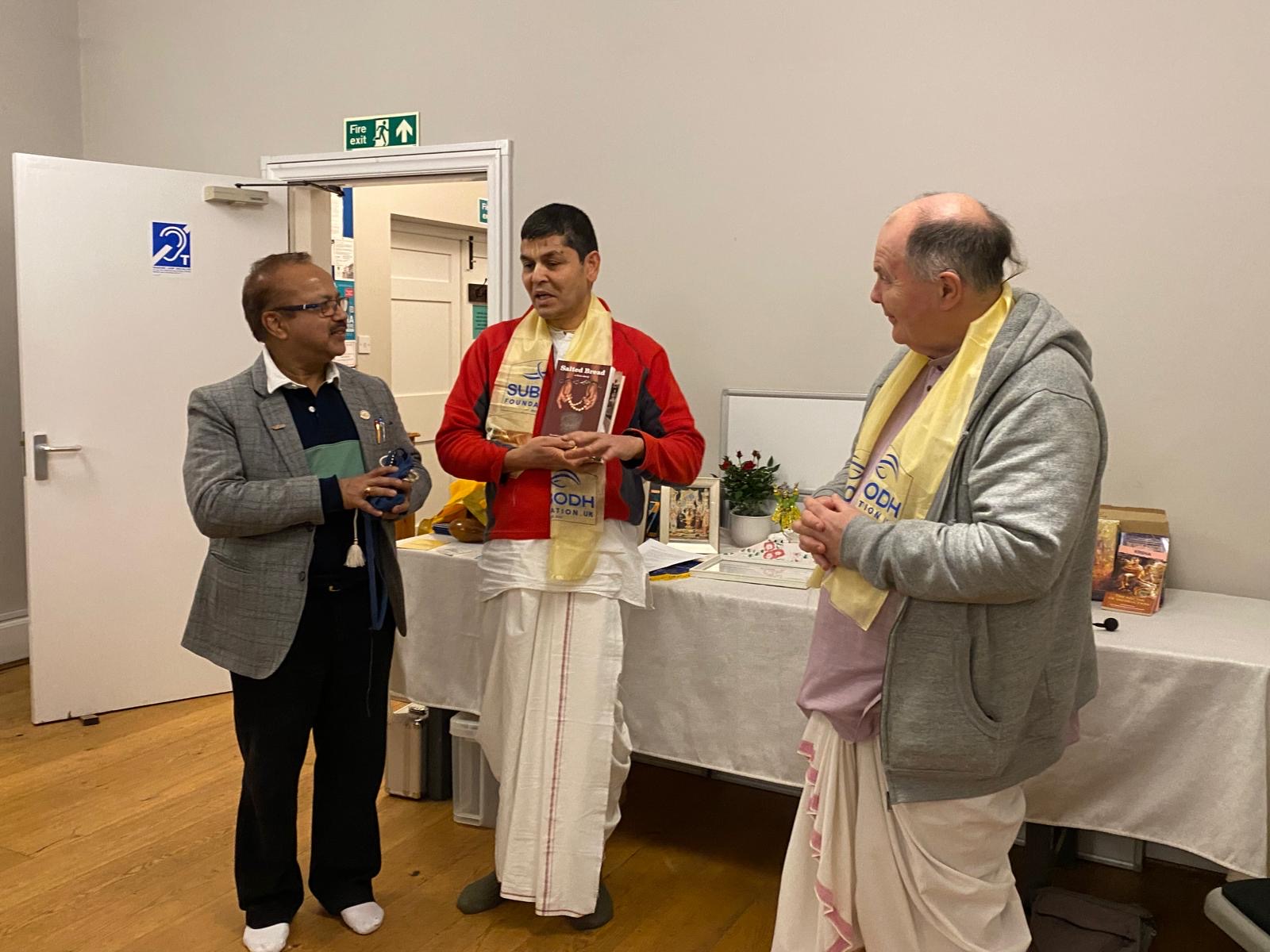 The ceremony was attended by HG Tribhangananda Das, a disciple of Srila Prabhupada, and Ganesh Thapa, Leader of Bhakti Centre York. The donation marks a significant contribution by Subodh Foundation UK towards supporting the spiritual and community activities of Bhakti Club York.