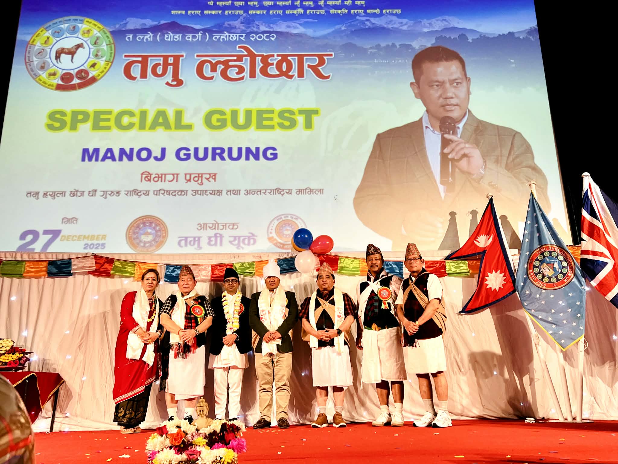 अल्डरसटस्थित एम्पायर हलमा डा. हर्क अवार्ड, कम्युनिटी अवार्ड वितरण एवं सांस्कृतिक प्रस्तुतिसहित ल्होछार मनाइंदा बेलायतका तमु र गैर तमु अतिथीहरुले हल खचाखच थियो । नेपालबाट आमन्त्रित गायक–गायिका केशबहादुर गुरुङ र सलोमी गुरुङले तमु तथा अन्य गीतमा दर्शकहरुलाई घण्टौं नचाए ।