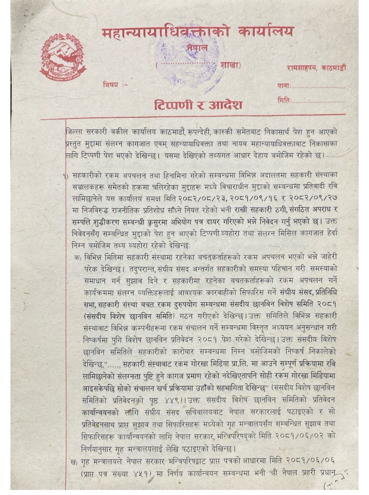 रविमाथिको संगठित अपराध र सम्पत्ति शुद्धीकरण मुद्दा हटाइने