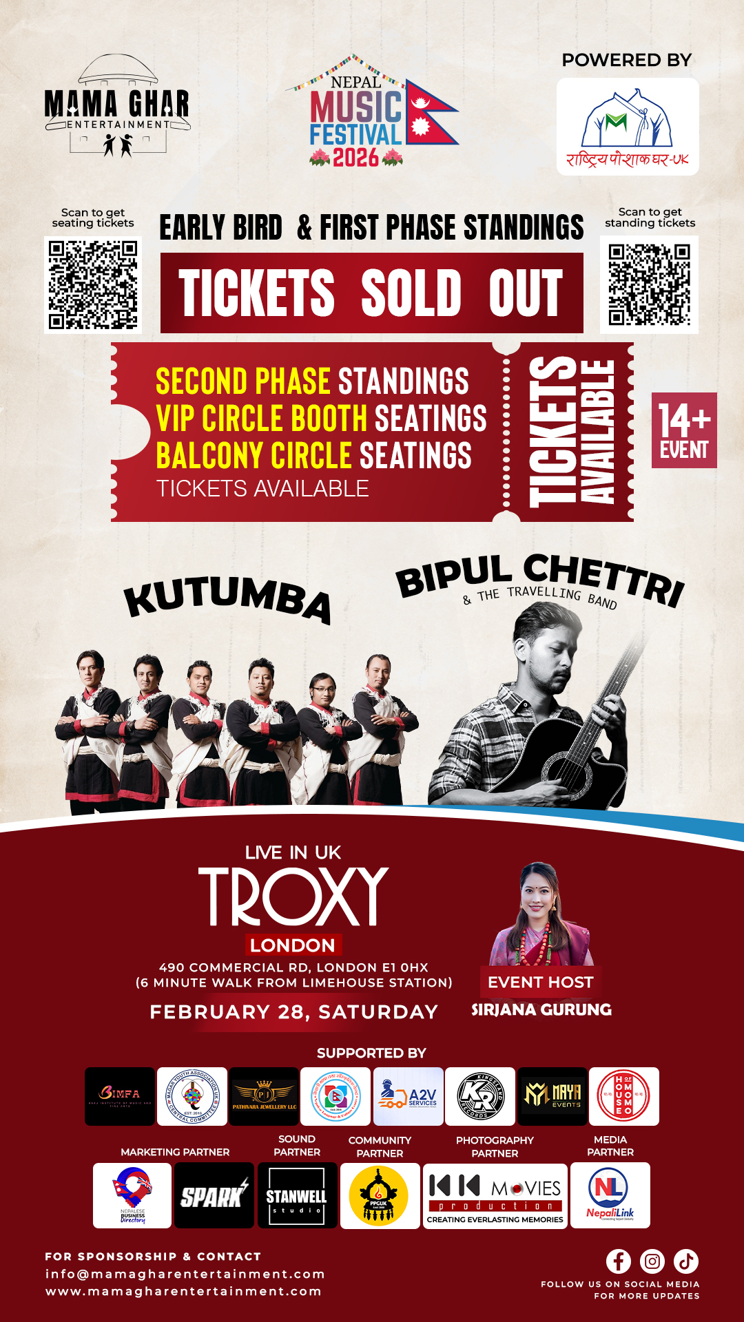 गत वर्ष लन्डनकै अर्को प्रतिष्ठित भेन्यू ओटुमा कन्दरा ब्याण्डको प्रस्तुतिमा ऐतिहासिक कन्सर्ट सम्पन्न गरेको मामाघरले यसपटक पनि लोकप्रिय कलाकार र व्याण्ड छानेको छ ।