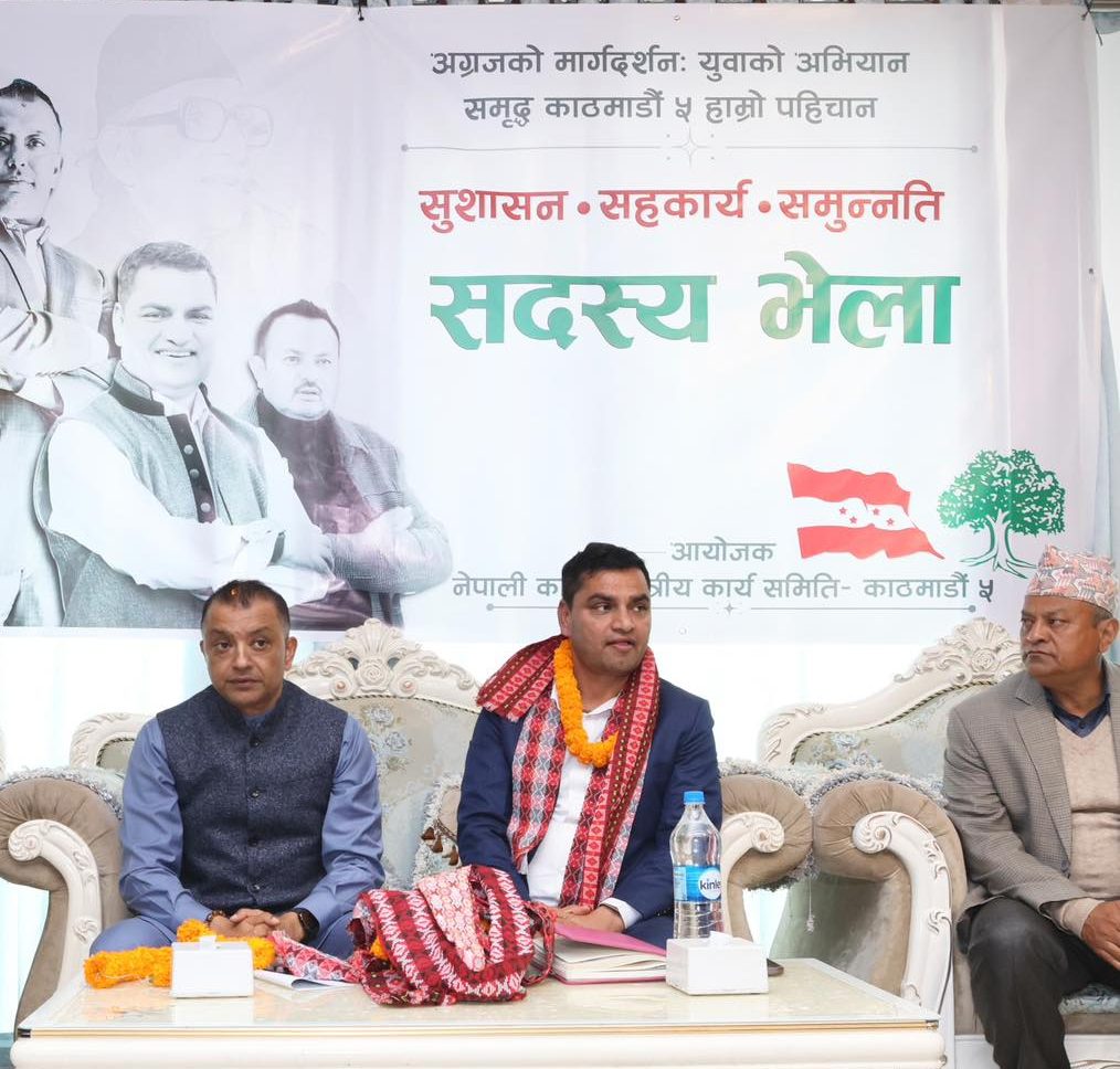 नेपाली कांग्रेस काठमाडौँ क्षेत्र नं ६ ले आज यहाँ आयोजना गरेको सदस्य भेलालाई सम्बोधन गर्दै उनले जेनजी आन्दोलनको मर्म र भावनाअनुसार कांग्रेस बदलिएकाले उक्त सन्देश घरघरसम्म पुर्‍याउनुपर्नेमा जोड दिए ।