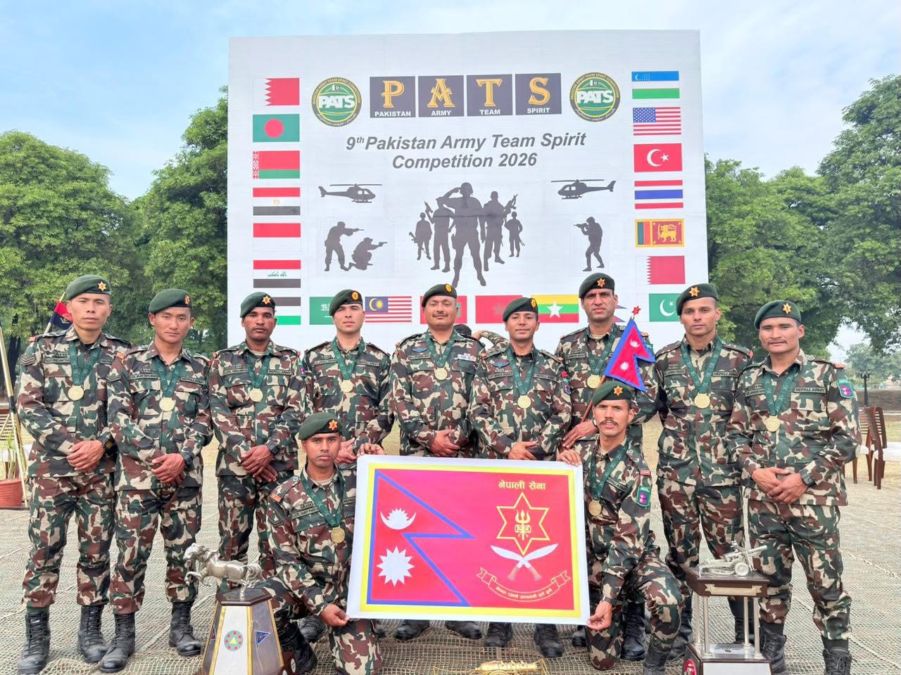 यही माघ २२ गतेदेखि २४ गतेसम्म पाकिस्तानको पञ्जाव प्रान्तको खरियाँस्थित ‘नेशनल काउन्टर टुरिजम सेन्टर’मा आयोजित प्रतियोगितामा सर्वोत्कष्ट अङ्कसहित स्वर्ण पदक जितेको नेपाली सेनाले जनाएको छ ।