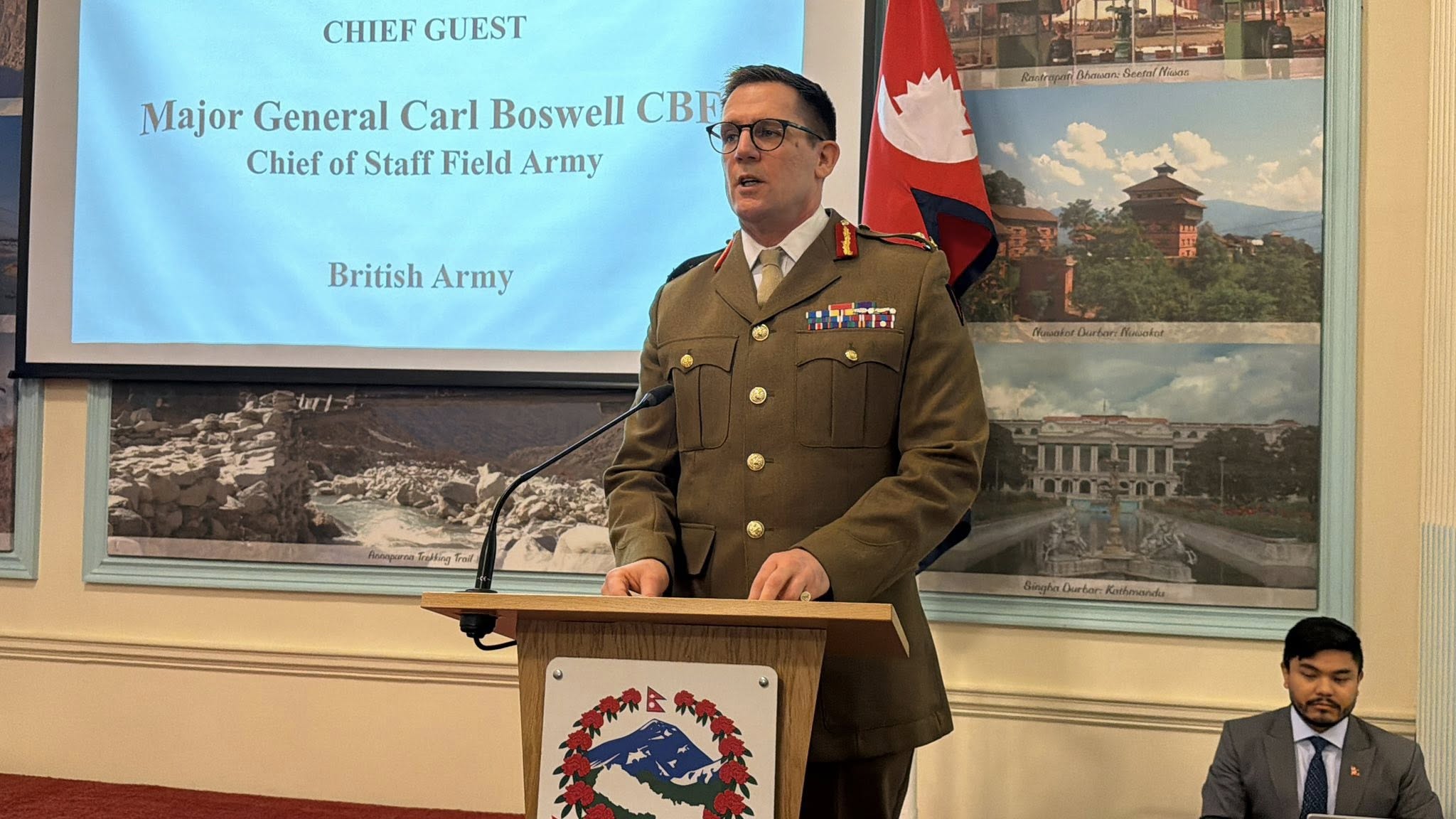लन्डन । ब्रिटिश सेनाका चिफ अफ स्टाफ, फिल्ड आर्मी मेजर जनरल कार्ल बोसवेल सीबीइले नेपाली सेनालाई गर्विलो इतिहास र उत्कृष्टताका लागि विश्वव्यापी प्रतिष्ठा भएको सैन्य संस्थान भन्दै प्रशंसा गरेका छन् ।
