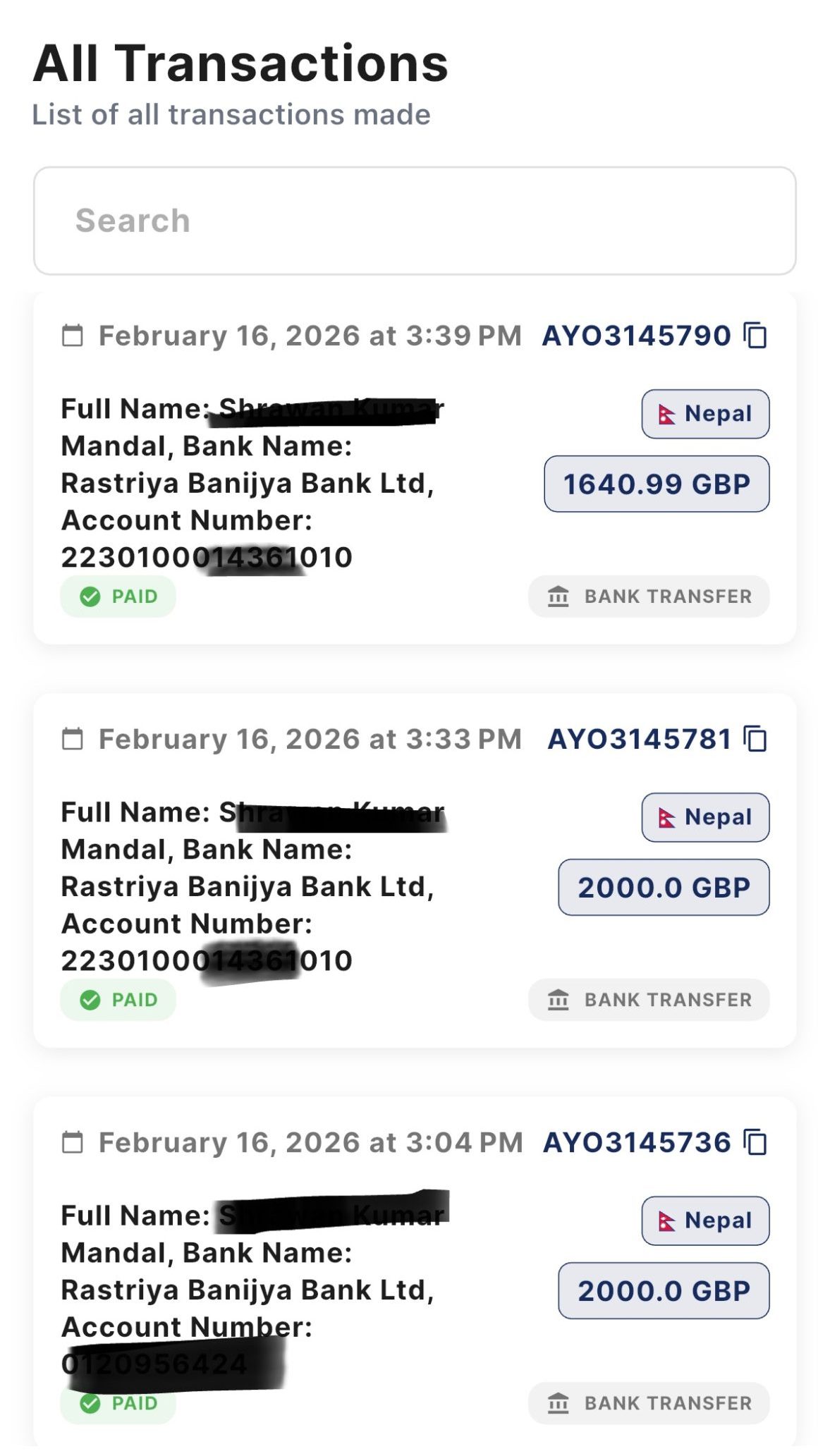 एन्जल फ्युनरल डाइरेक्टर्सलाई पार्थिव शरीर स्वदेश पठाउने शुल्कबापत ४, ५०० पाउण्ड भुक्तानी गरिएको र गोफण्डमीको शुल्क ४१७.०१ पाउण्ड कटाएर बाँकी रहेको ५,६४०.९९ पाउण्ड नेपाल पठाइएको एनआरएनए यूकेका अध्यक्ष राजेन्द्र पुडासैनीले बताए ।
