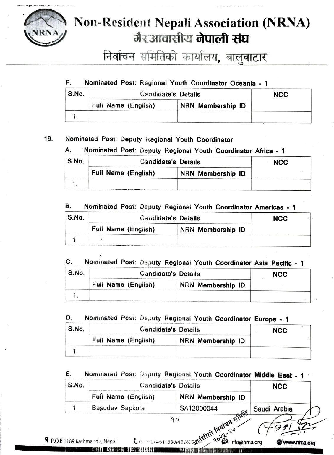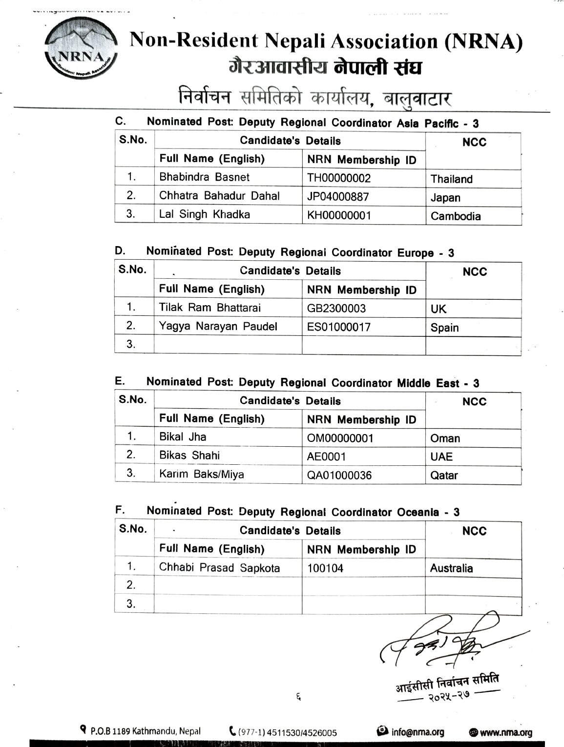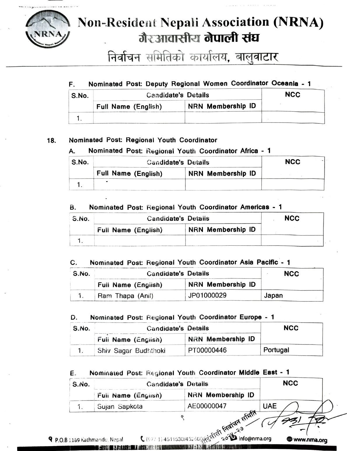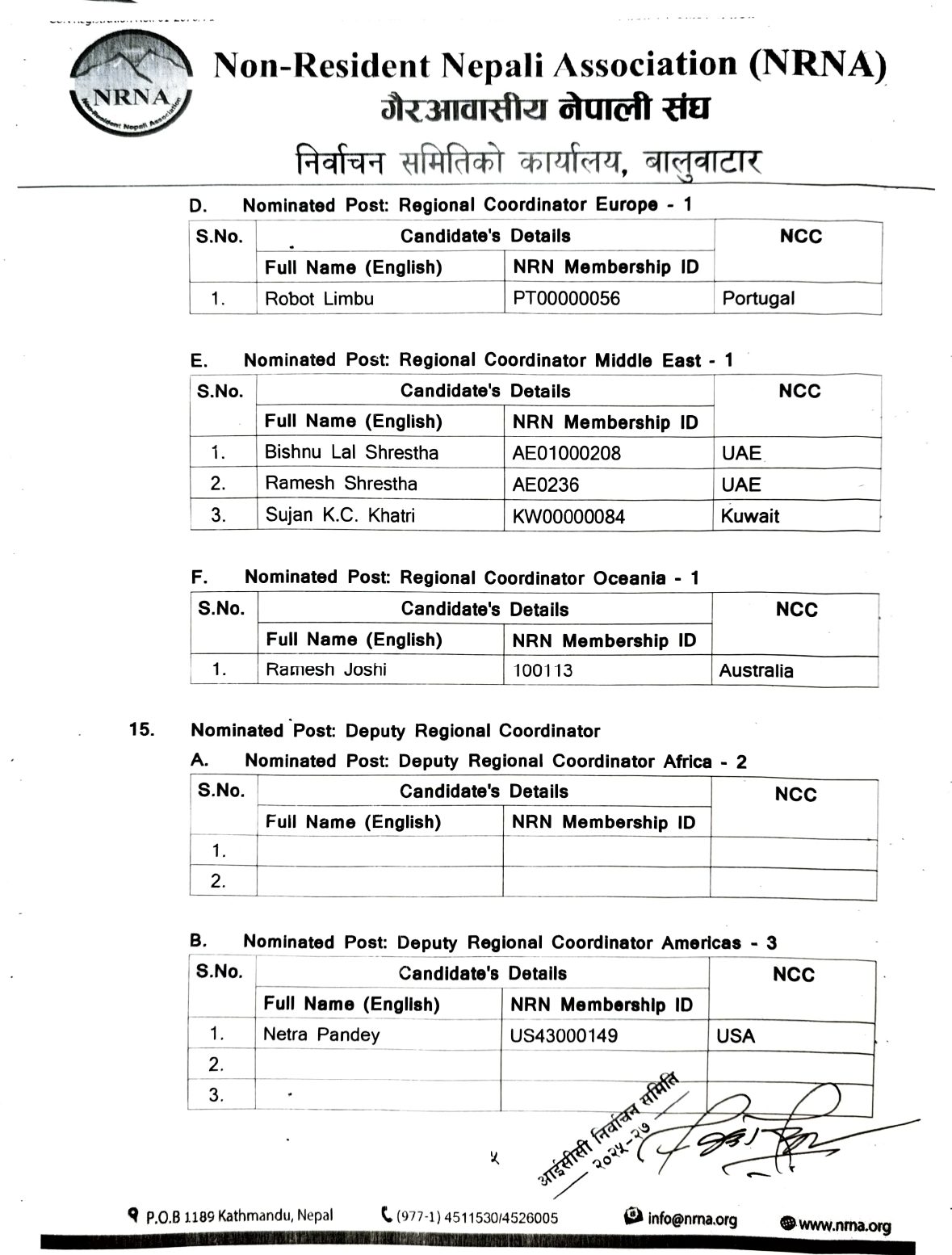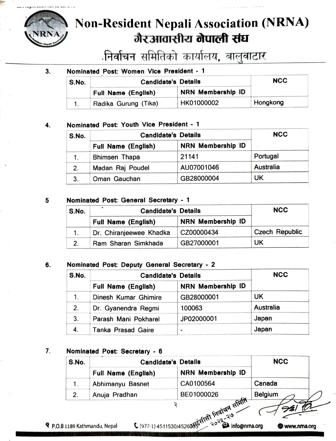 त्यस्तै, महासचिवका लागि चिरञ्जीवी खड्का (चेक रिपब्लिक) र रामशरण सिम्खडा (यूके) चुनावी मैदानमा उत्रिएका छन् ।