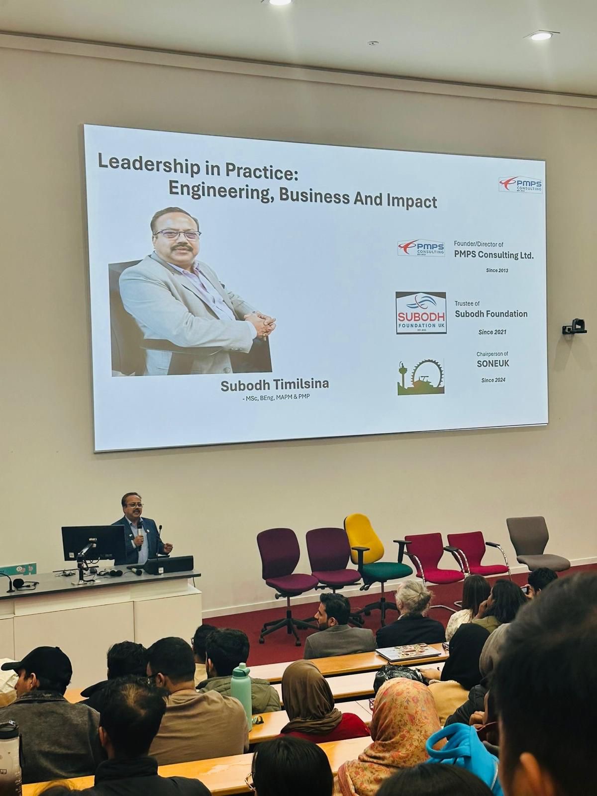 Among the speakers was Engineer Subodh Timilsina, owner of PMPS Consulting, trustee of Subodh Foundation UK, and Chairperson of SONEUK. He shared insights from his professional journey, including both successes and challenges, and encouraged students to pursue paths that align with their personal values rather than focusing solely on financial gain.