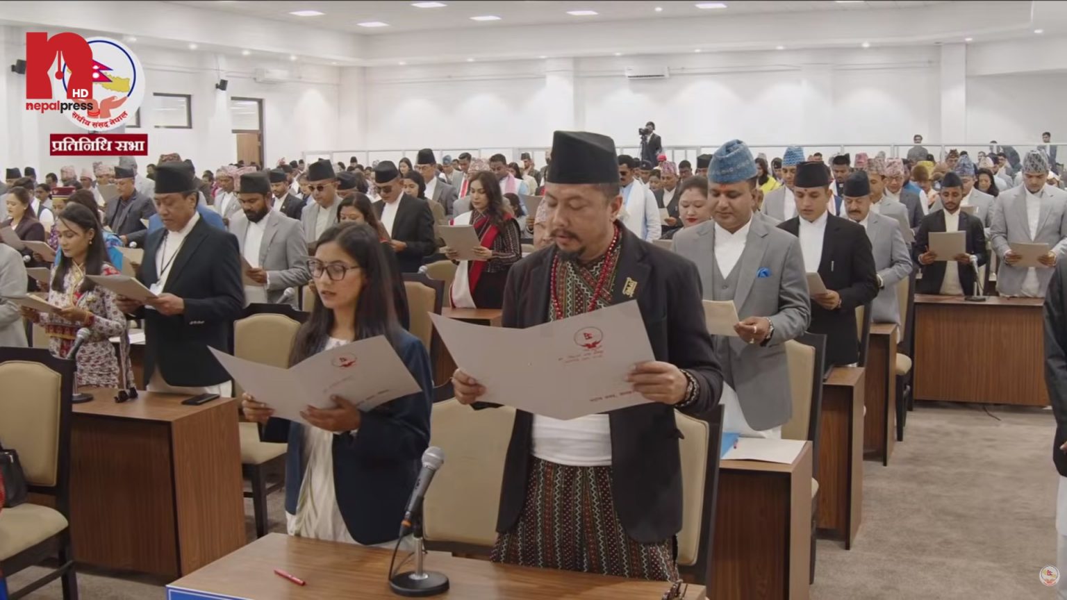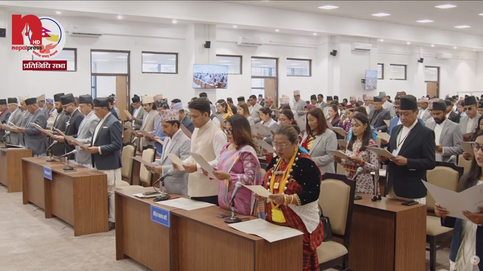 विहीबार सिंहदरबारस्थित नयाँ संसद् भवनमा आयोजित समारोहमा उनीहरूले पद तथा गोपनीयताको शपथ लिएका हुन्।