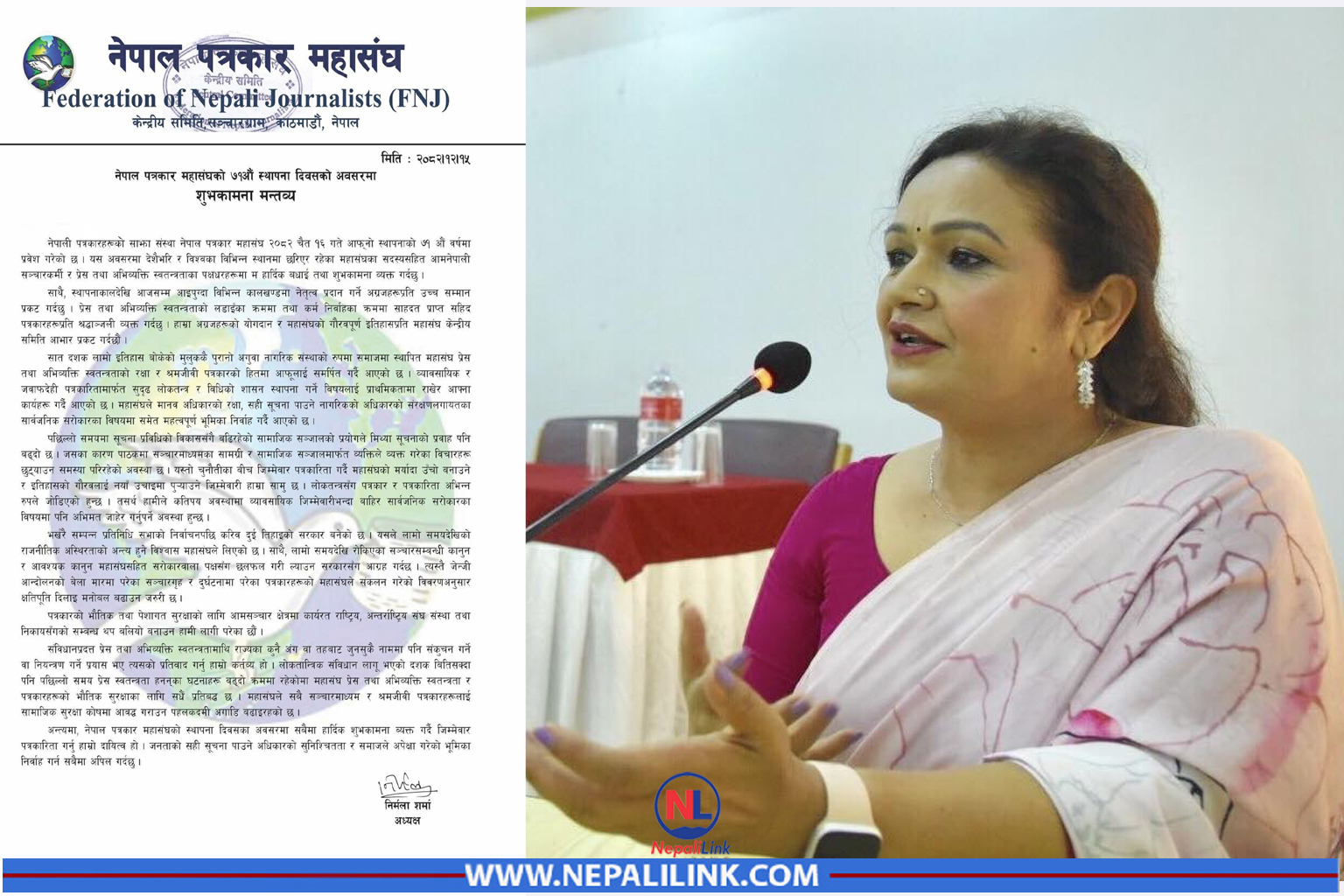 महासंघकी अध्यक्ष निर्मला शर्माद्वारा जारी शुभकामना मन्तव्यमा महासंघले स्थापनाकालदेखि नै प्रेस तथा अभिव्यक्ति स्वतन्त्रताको रक्षा, श्रमजीवी पत्रकारको हकहित तथा लोकतान्त्रिक मूल्यमान्यताको संरक्षणमा महत्त्वपूर्ण भूमिका निर्वाह गर्दै आएको उल्लेख गरिएको छ।