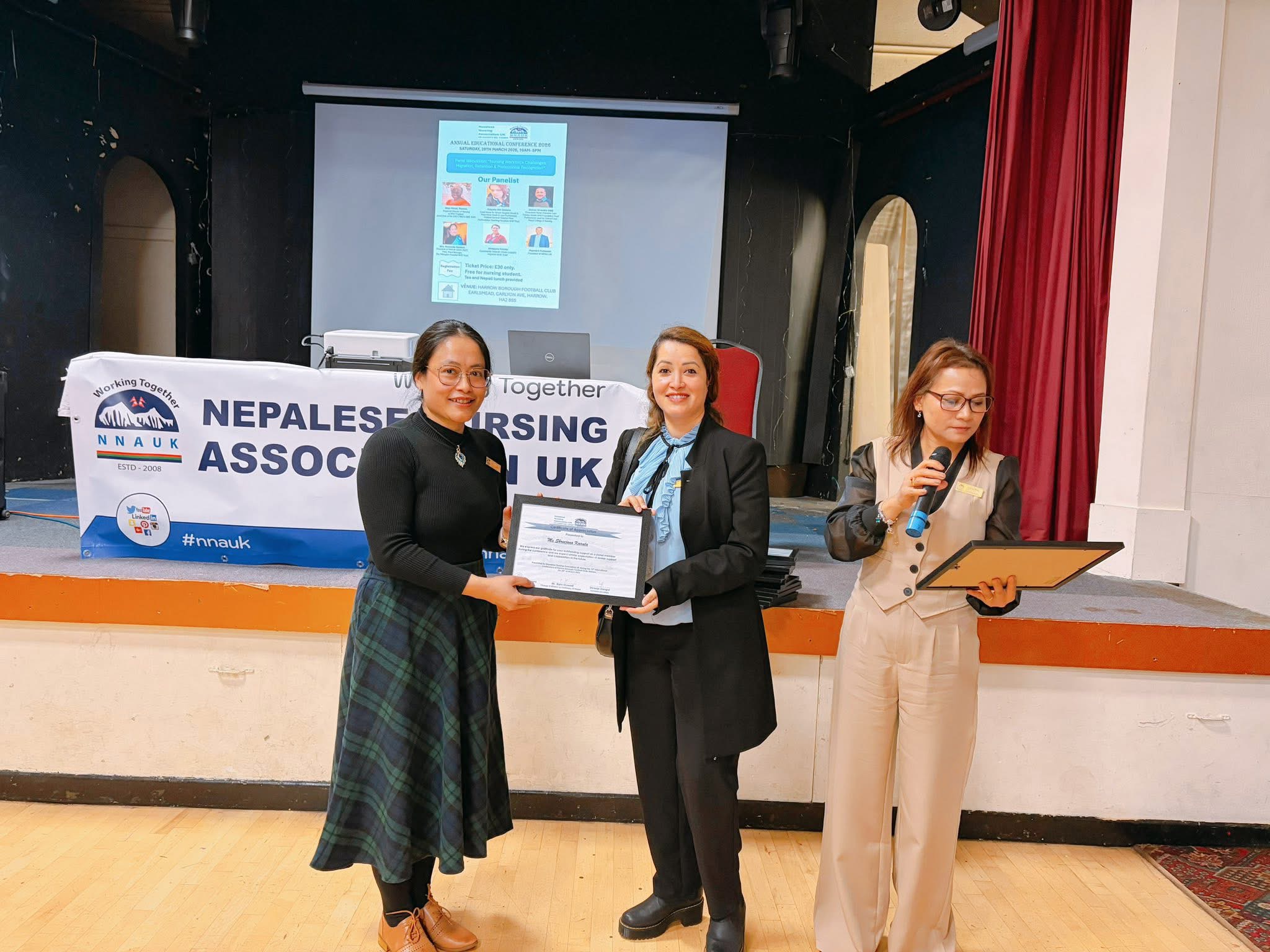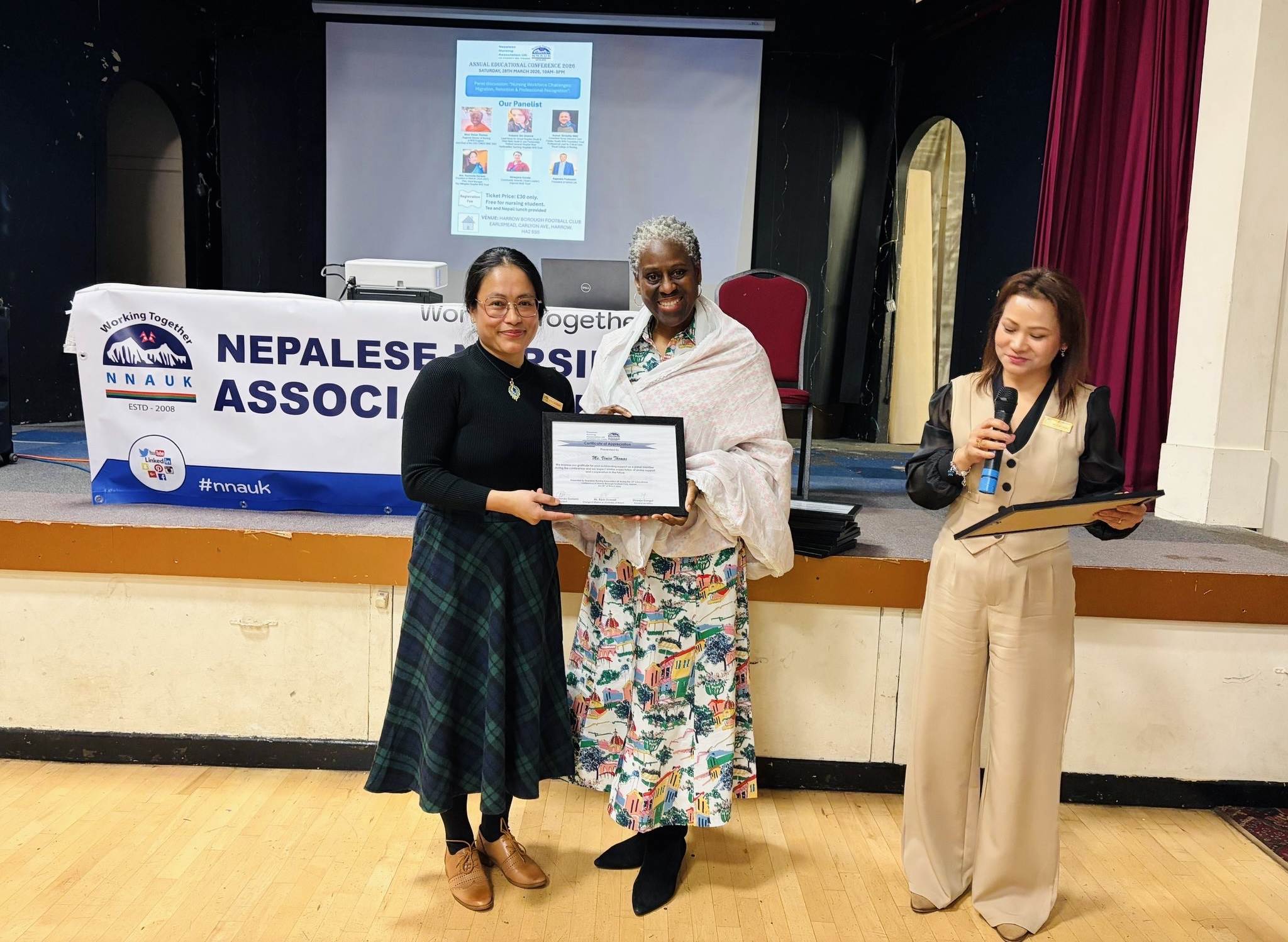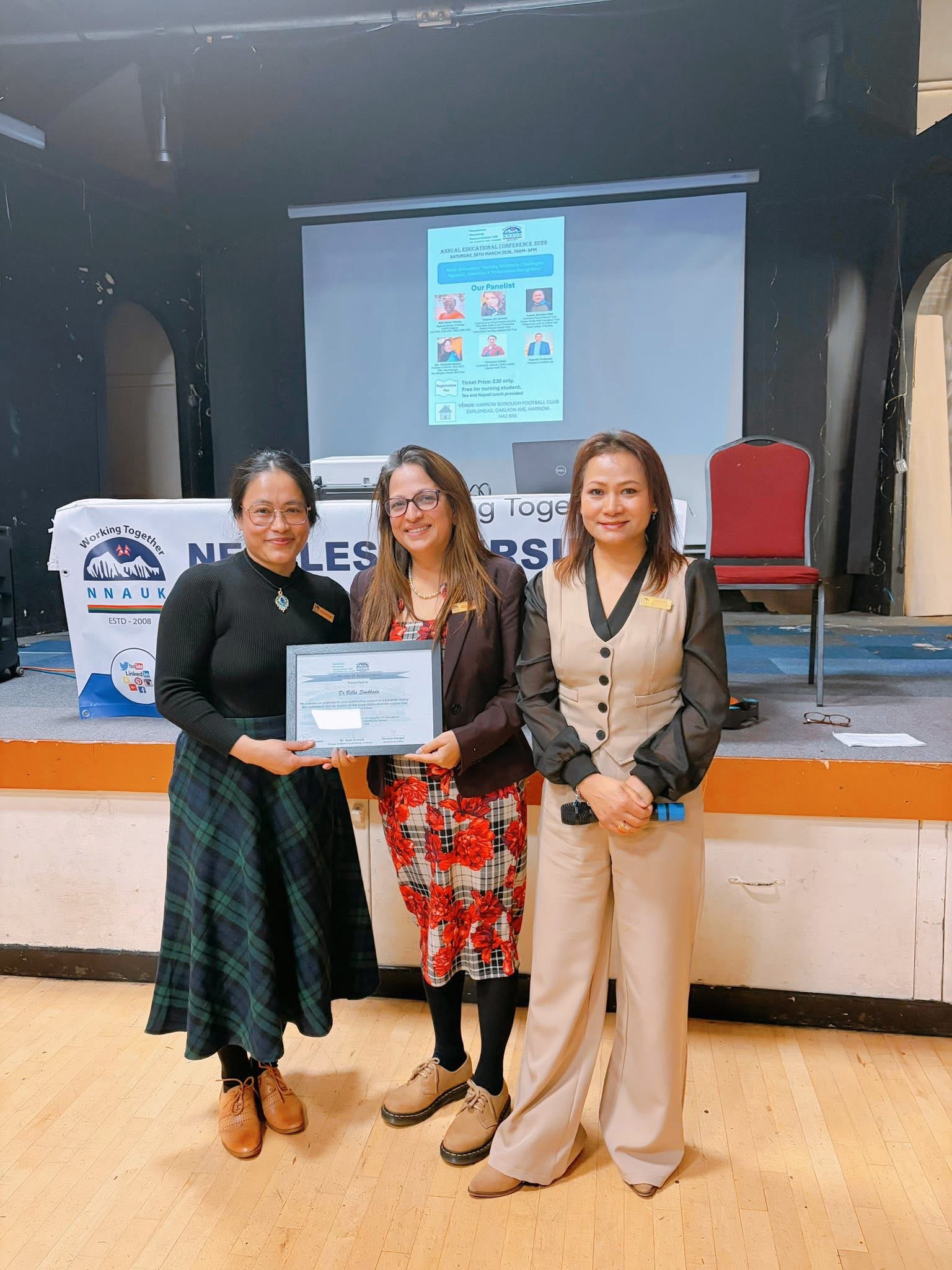 अध्यक्ष रश्मिता दर्लामीले समापन मन्तव्यमा सबै वक्ता, सहभागी, प्रायोजक र साझेदारहरूलाई धन्यवाद दिँदै नेपाली नर्सहरूबीच एकता र निरन्तर व्यावसायिक विकासको महत्वमा जोड दिएकी थिइन्। प्रमुख अतिथि दुवाडी, एनएचएस इङ्ल्यान्डका प्रतिनिधि र एनएमसी प्रतिनिधिलाई प्रशंसा र मायाको प्रतीकस्वरूप ‘टोकन अफ लभ’ प्रदान गरियो।