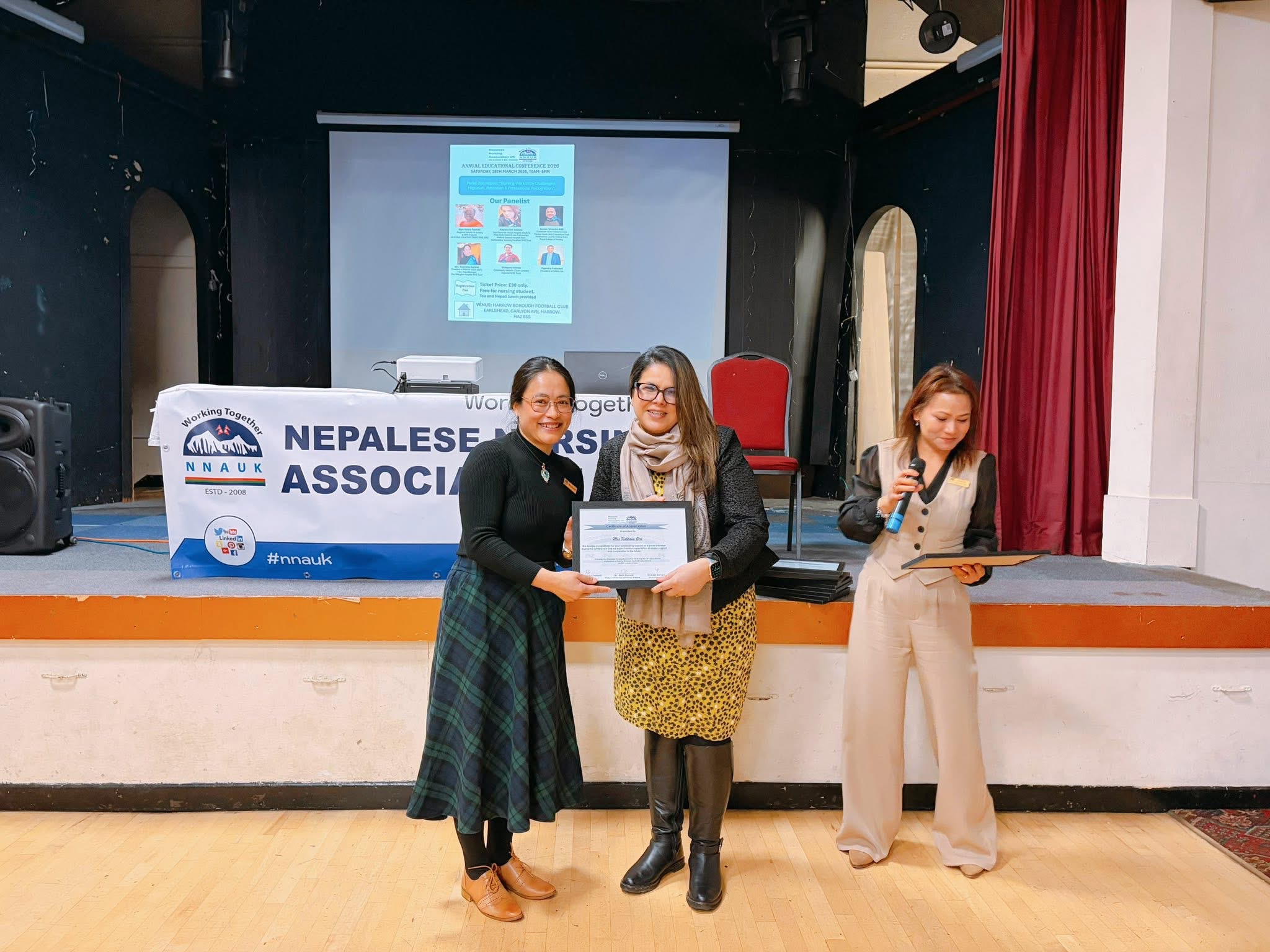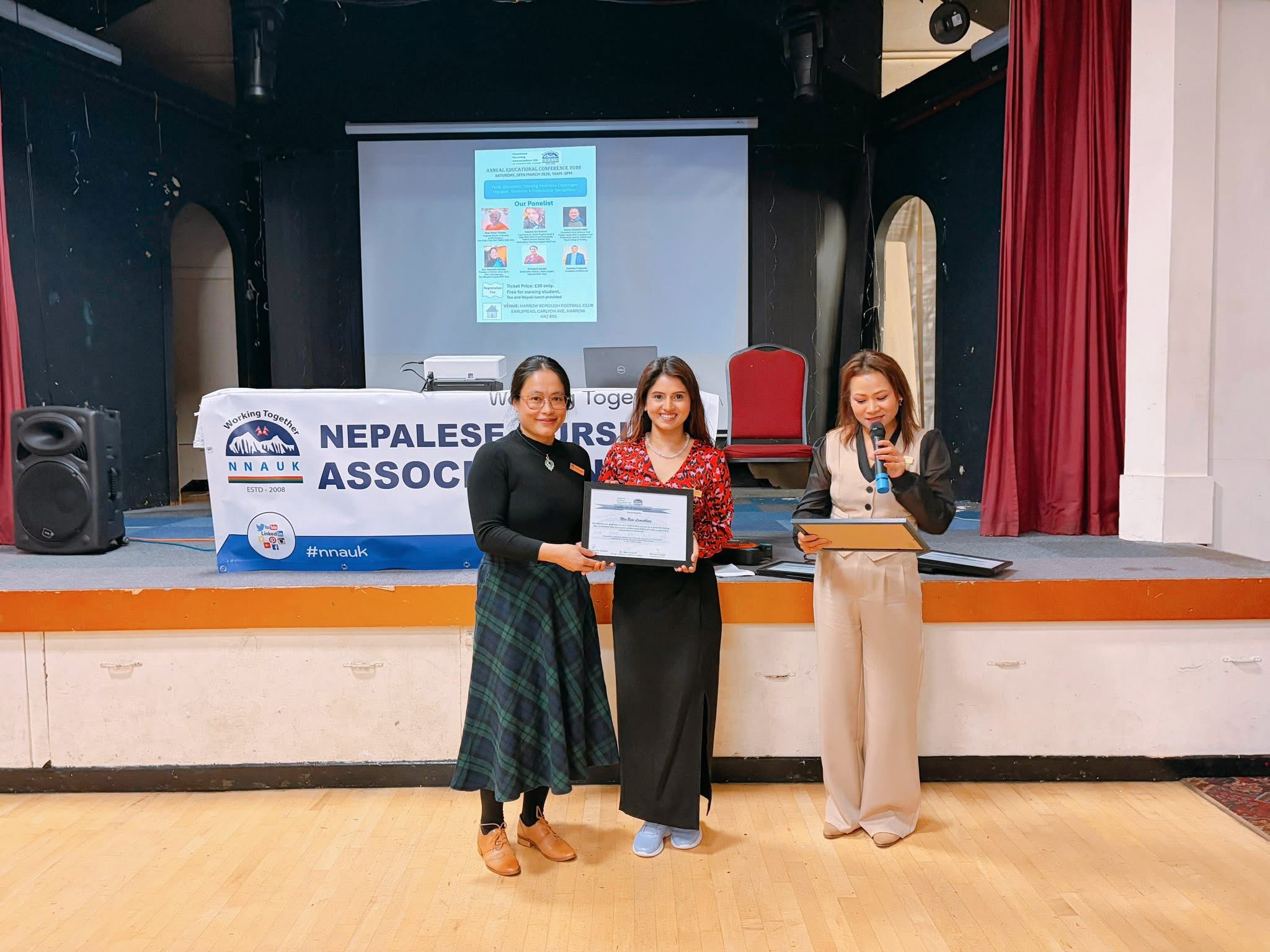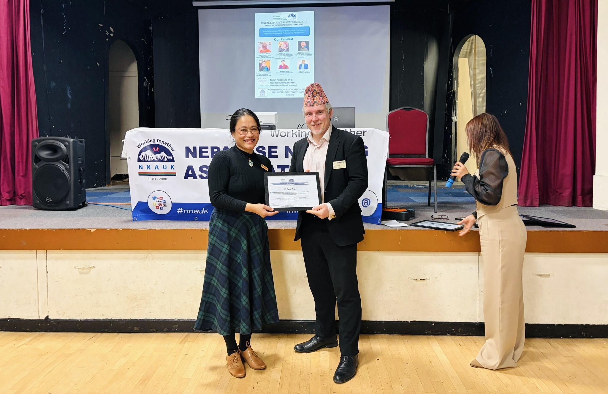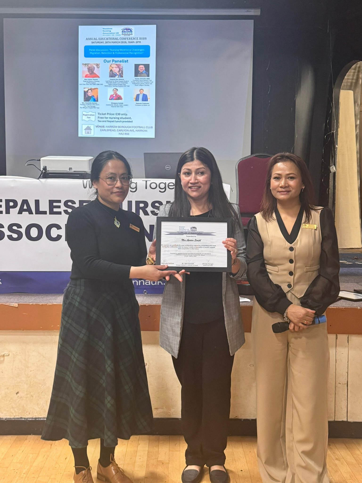 अध्यक्ष रश्मिता दर्लामीले समापन मन्तव्यमा सबै वक्ता, सहभागी, प्रायोजक र साझेदारहरूलाई धन्यवाद दिँदै नेपाली नर्सहरूबीच एकता र निरन्तर व्यावसायिक विकासको महत्वमा जोड दिएकी थिइन्। प्रमुख अतिथि दुवाडी, एनएचएस इङ्ल्यान्डका प्रतिनिधि र एनएमसी प्रतिनिधिलाई प्रशंसा र मायाको प्रतीकस्वरूप ‘टोकन अफ लभ’ प्रदान गरियो।