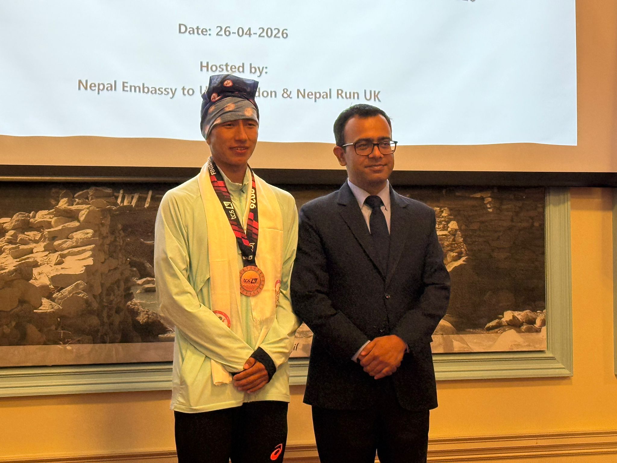 लन्डन म्याराथनमा भाग लिएका धावकहरुलाई दूतावासमा सम्मान