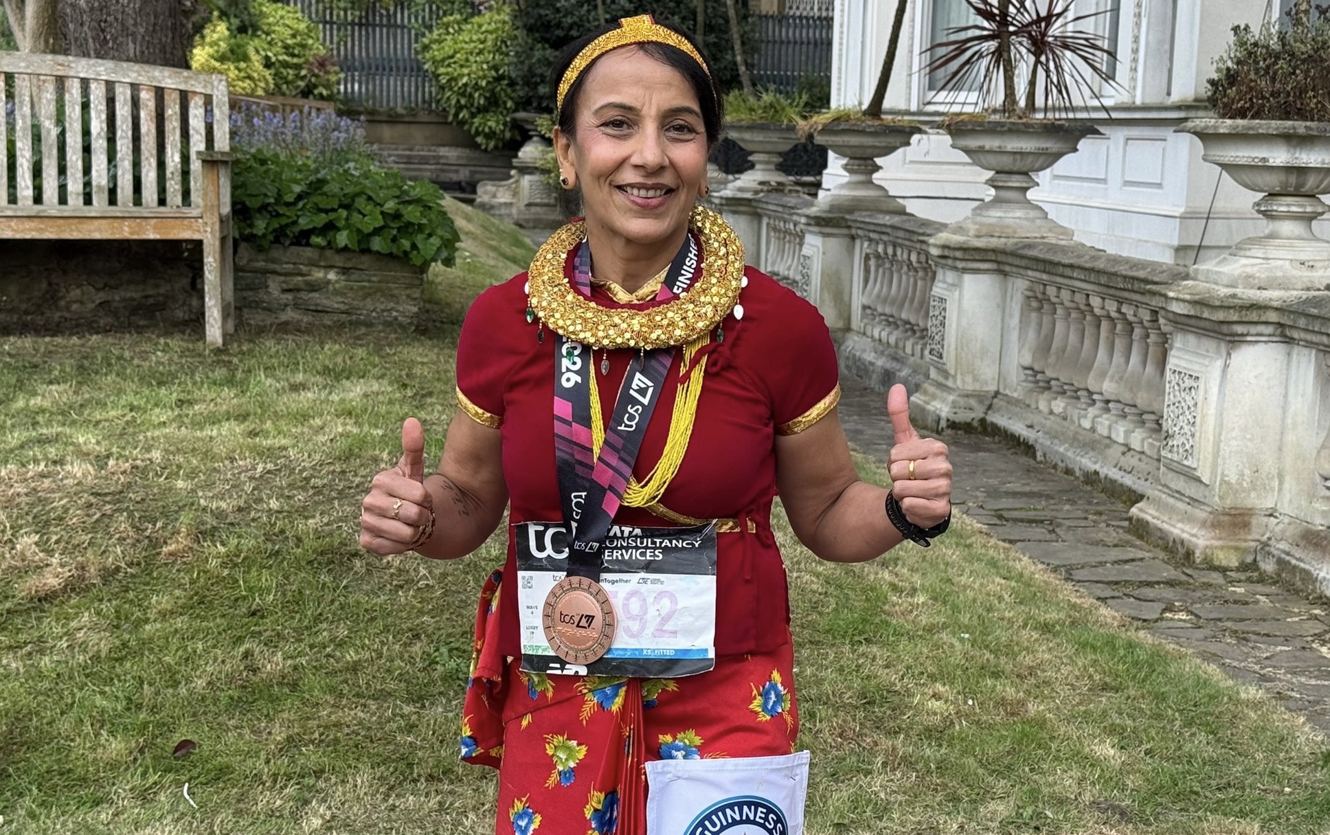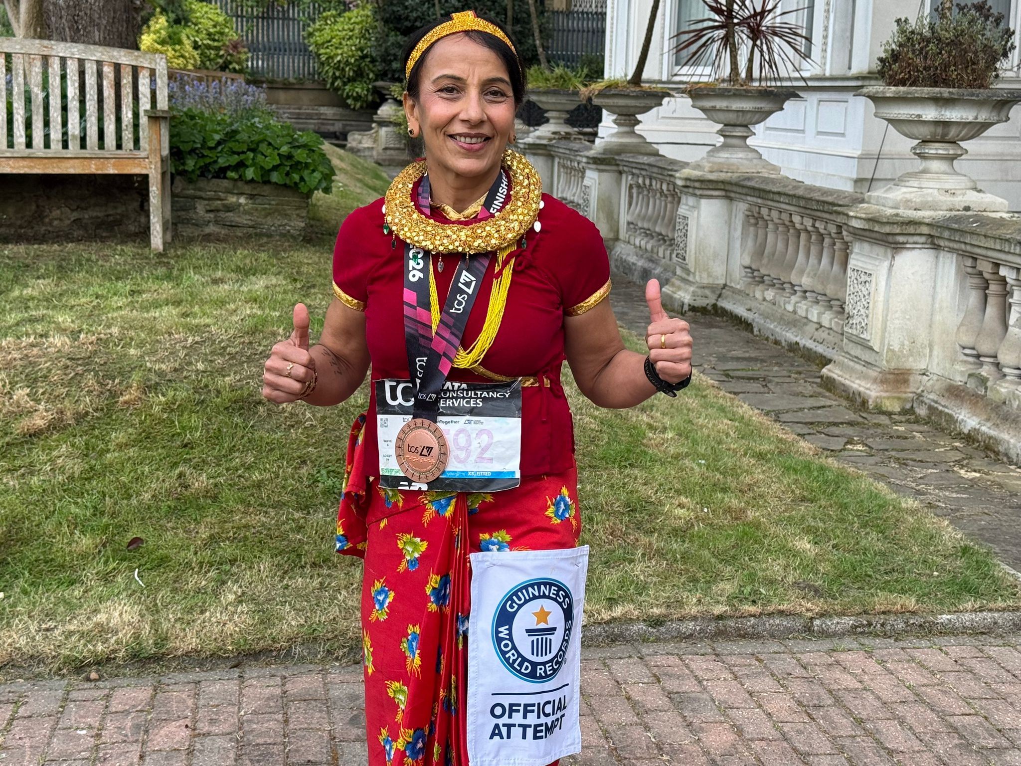 लन्डन । बेलायतको नेपाली समुदायमा आफ्नो दौडका सहयात्रीबीच आइरन लेडी उपनामले चिनिने तेजमाया रेग्मी सिग्देल (अन्जु) ले लन्डन म्याराथनमा मौलिक नेपाली पहिरन गुन्यू चोलीमा दौडिएर गिनिज वर्ल्ड रेकर्ड कायम गरेकी छन् ।