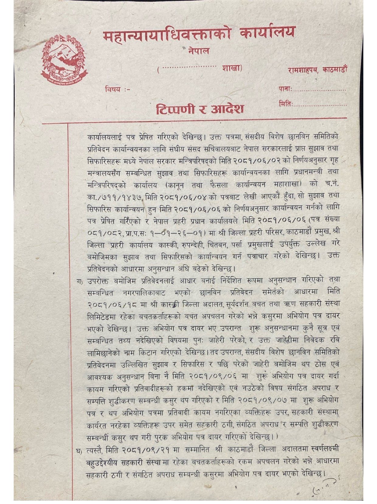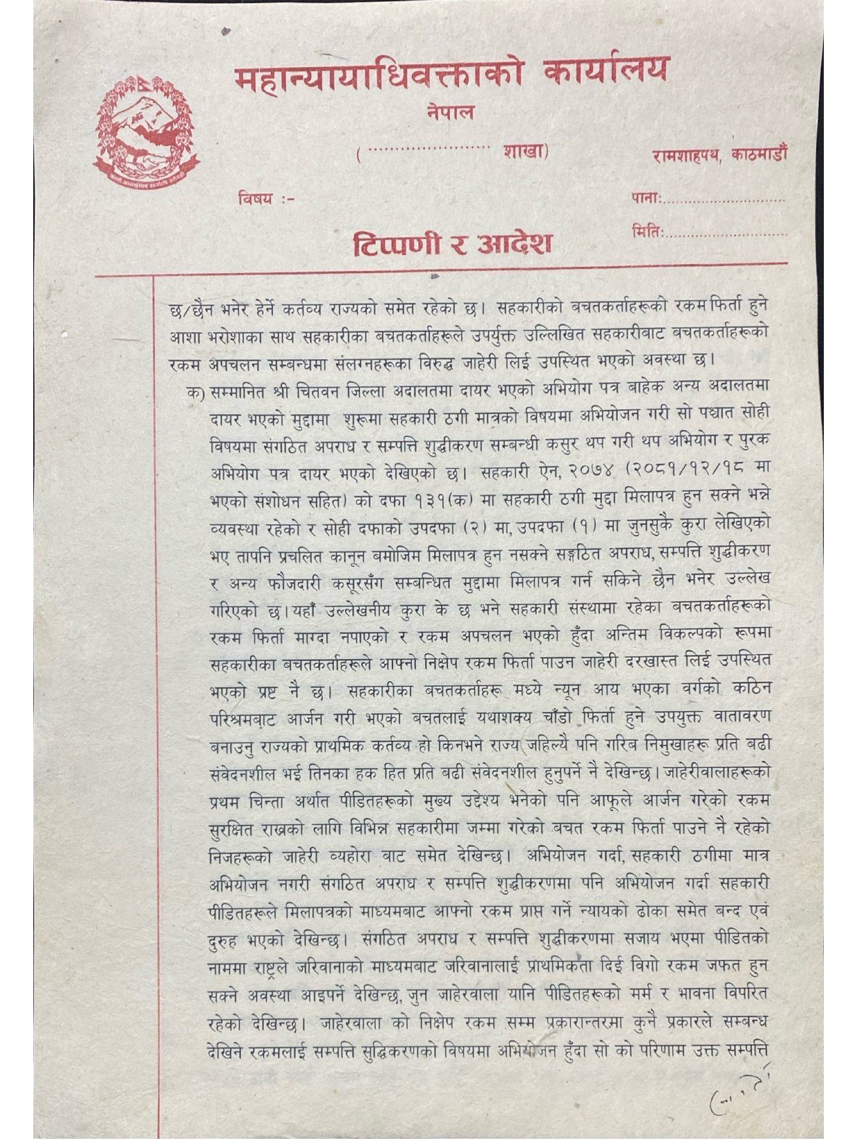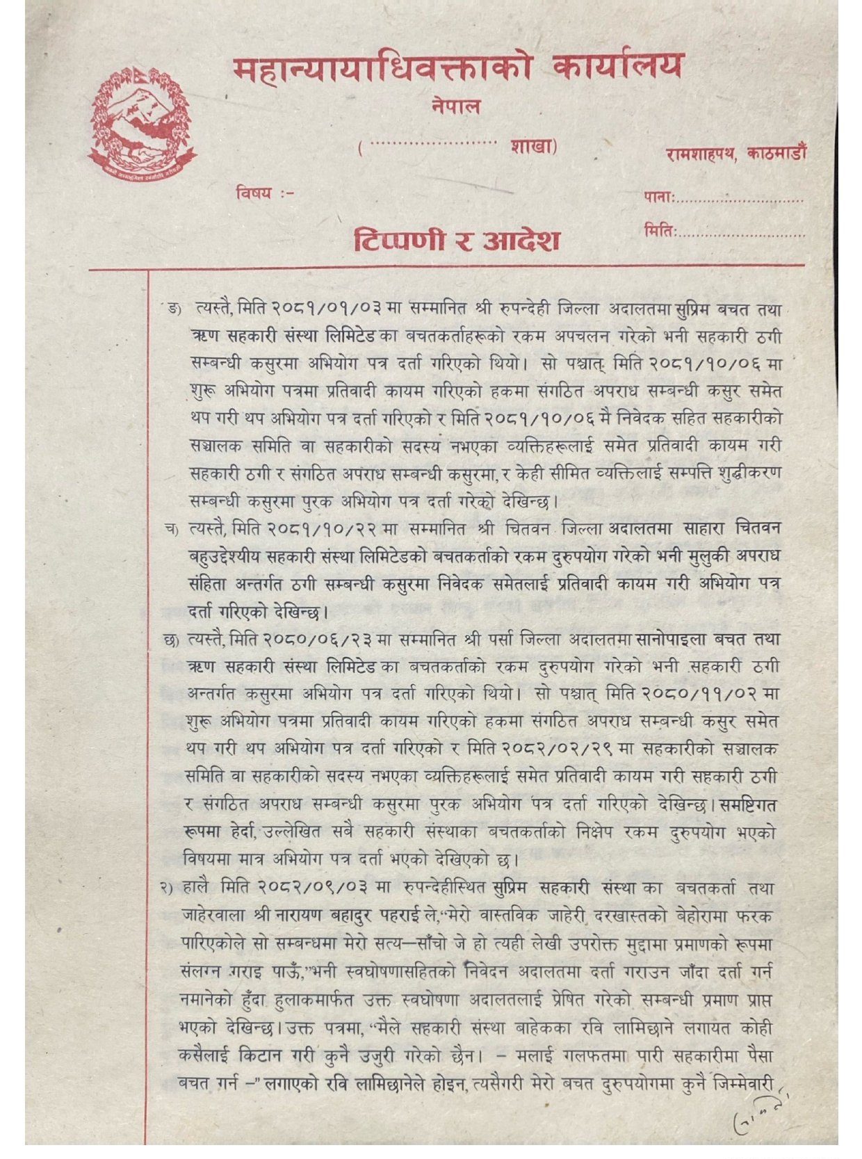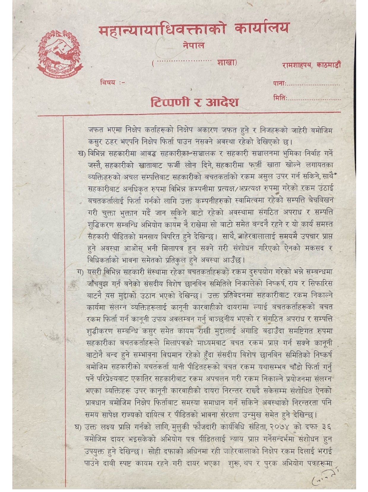 पीडितलाई छिटो रकम दिलाउन ‘सहकारी ठगी’ सम्बन्धी अभियोगमात्र कायम राख्नुपर्ने कार्यालयको जिकिर छ ।