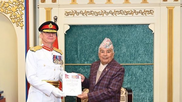 काठमाडौँ। राष्ट्रपति रामचन्द्र पौडेलसमक्ष संयुक्त अधिराज्य बेलायती सेनाका मेजर जेनरल जेरल्ड एम स्ट्रिकलेण्डसहितको टोलीले गोर्खा ब्रिगेडको वार्षिक प्रतिवेदन प्रस्तुत गरेको छ । सो अवसरमा राष्ट्रपति पौडेलले अन्तर्राष्ट्रिय मञ्चहरूमा नेपाल र संयुक्त अधिराज्यले विकास, मानव कल्याण र शान्तिसँग...